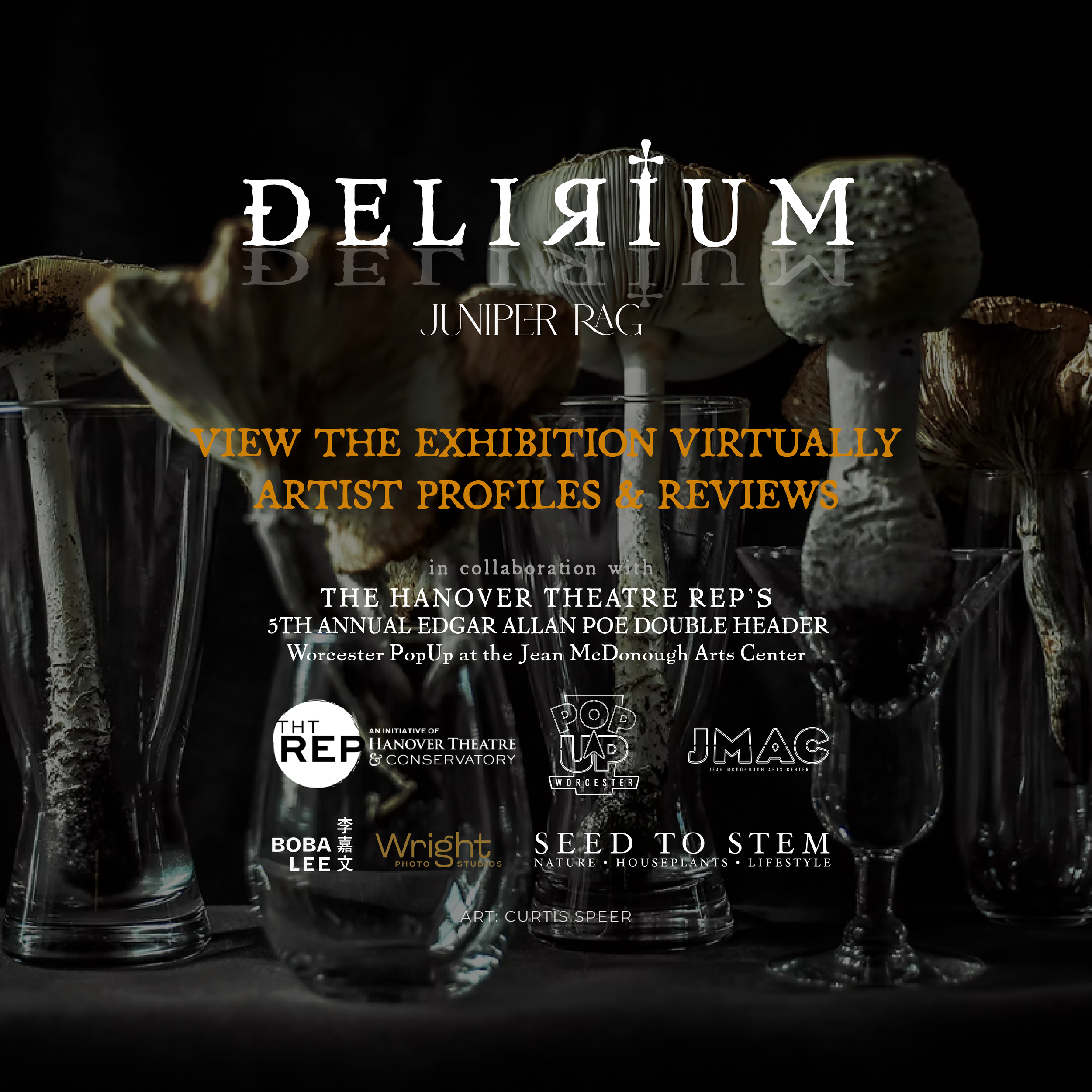DELIRIUM: CURATION, LIVE EXHIBITION & INSTALLMENT & COLLABORATION // Curate a 40 artist, 150 piece group show by Michelle May and Payal Thiffault of Juniper Rag in collaboration with JMAC, Worcester PopUp and The Hanover Theatre Rep’s performances of Edgar Allan Poe Double Header. Art acquired by lead actor of Dead City cast Jeffery Dean Morgan, lead makeup and a commission by lead actress of Dead City. October, 2025.
