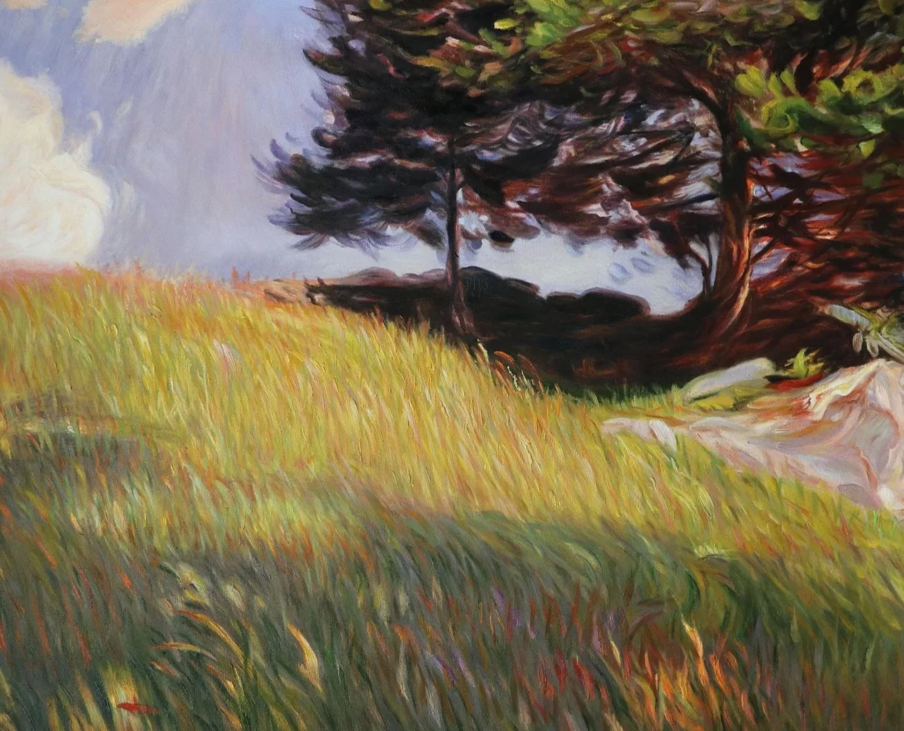 Worcester’s emergence as a city in the next century with ten colleges occurred because of the firm and deep roots put down by those who dedicated their lives to independence and radical new ideas, backed by a moral, “good for all” attitude. Worcester, Massachusetts was ideally located, economically vibrant, socially progressive, and culturally committed to learning. These forces combined to make higher education a pillar of Worcester’s identity, helping transform it from a manufacturing hub into a center for ideas, innovation, and opportunity. It must have been quite the golden age in Worcester at this time, golden enough for John Singer Sargent to come and stay a few times to paint the portraits of notables in the area, close enough to Boston and Isabella Stewart Gardener, who bought around 60 of his paintings and whom he exchanged over 200 letters with. For context, in the late 1800’s Sargent was charging 4K for a full length portrait. Today’s equivalent would be around 100K! Group with Parasols (Siesta) (1905) sold by Sotheby’s for 23M in 2005. Both characters were known for their unconventional behavior and they shared an interest in haute fashion and the very best of art, especially those with historical and cultural significance.