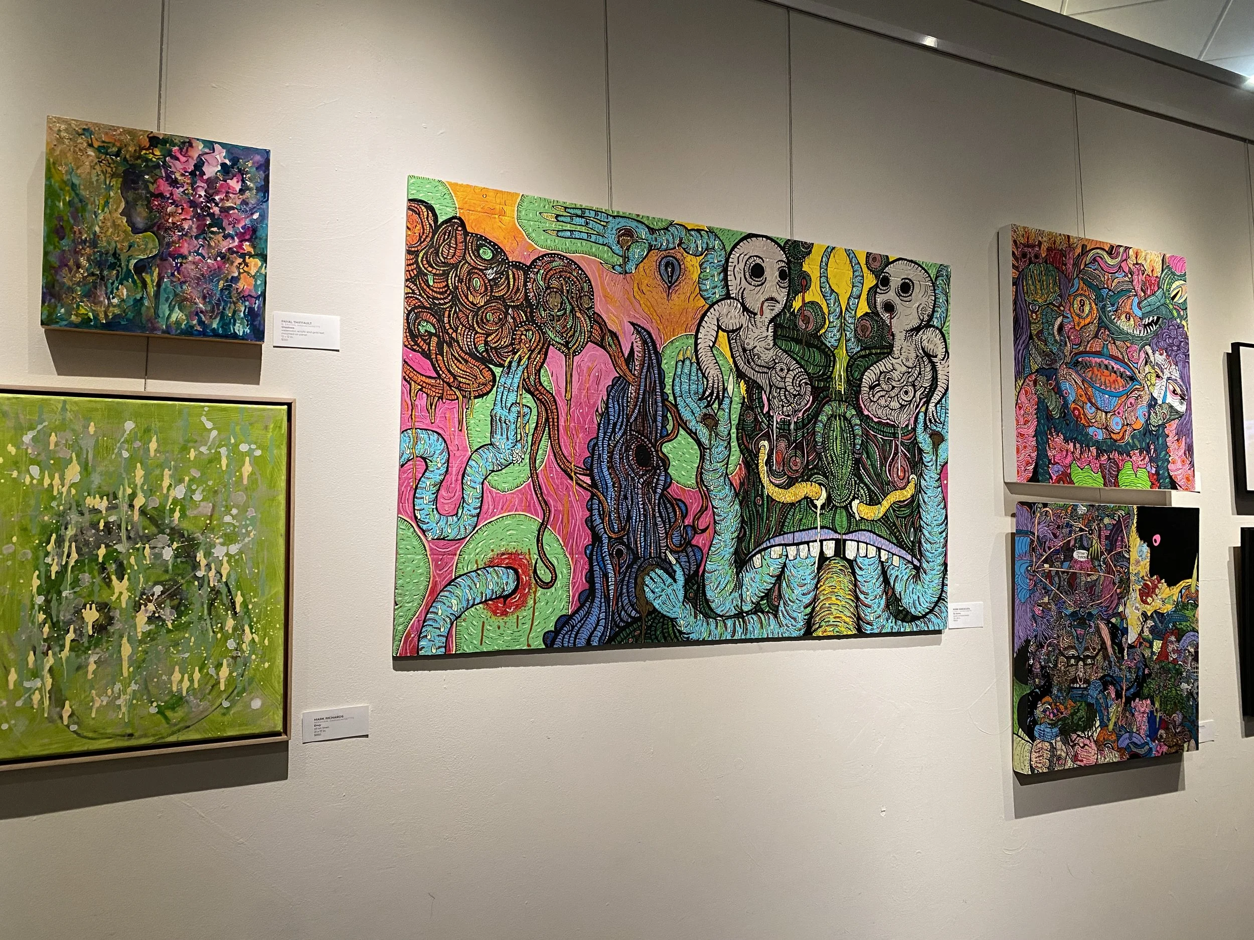 Mark J. Richard’s Spirit painting occupies a vital place within the D E L I R I U M story, bridging the divide we speak about between the conscious and subconscious, the physical and the spiritual. Mark’s process merges mind and body—thought transformed into movement, emotion into gesture—resulting in works that expose the darker contours of the inner self. Through layered colors and fleeting human skull forms, he explores what we all wonder about, afterlife, doubt, faith, and the unseen energies that pass between the material world and what lies beyond.
