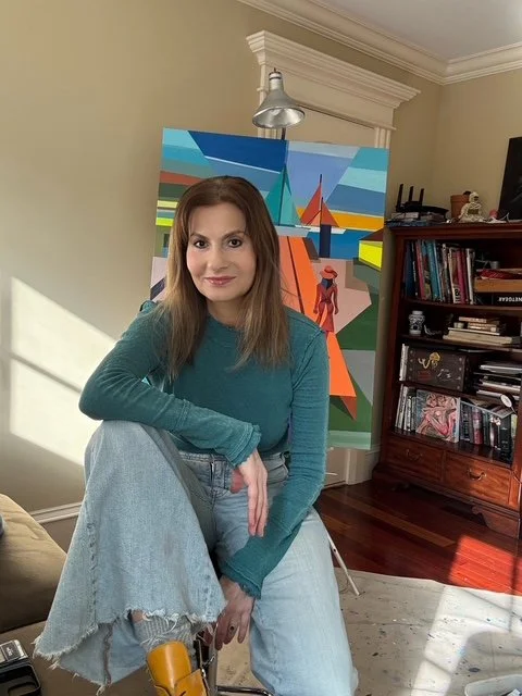 Artist Statement & Bio // I am a Boston-based artist specializing in hard-edge geometric abstraction. Bold colors, sharp lines, and unapologetic optimism define my work. I explore the space between reality and imagination through structured forms, where architecture meets emotion.