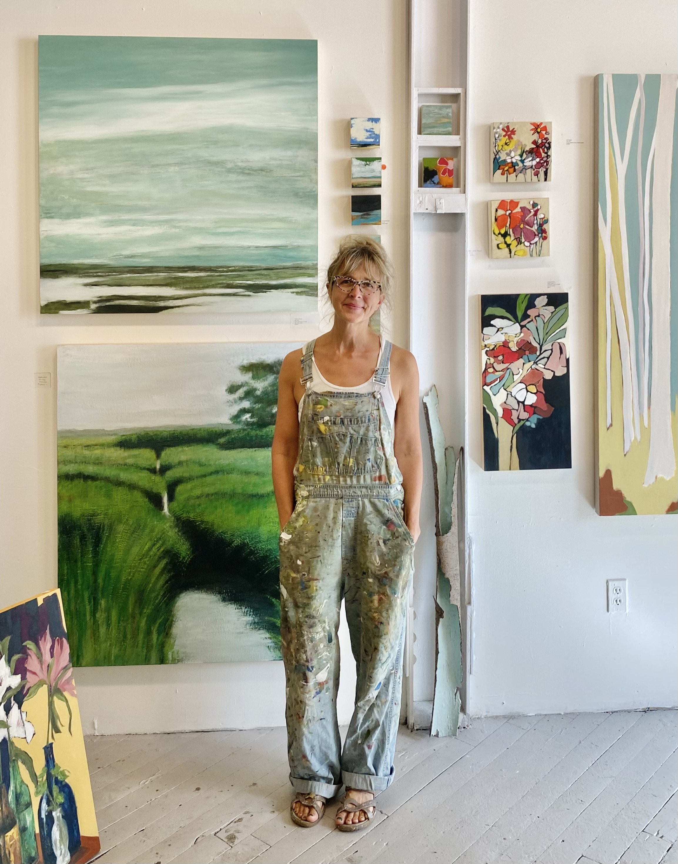 Eelgrass meadows move constantly. They gather, thin, tangle, reappear. I respond to this behavior through repetition: color and accumulations of marks, shifts in density, passages of calm and disruption. My work does not illustrate these systems but embodies their patterns—the way they resist visibility while remaining essential. My practice begins with keen observation—hours spent watching tides rise and recede, noting how light fractures across surface and depth, how sediment settles and lifts. These experiences feed an intuitive studio process where abstraction becomes a form of attention. In the studio, marks accumulate and dissolve. Color shifts echo changing light and depth. The paintings hold tension between structure and drift, stability and loss. This visual language has developed through years of field engagement, environmental research, and collaboration with marine restoration efforts along the Northeast coast. Each location imprints its own tempo, palette, and sense of vulnerability.