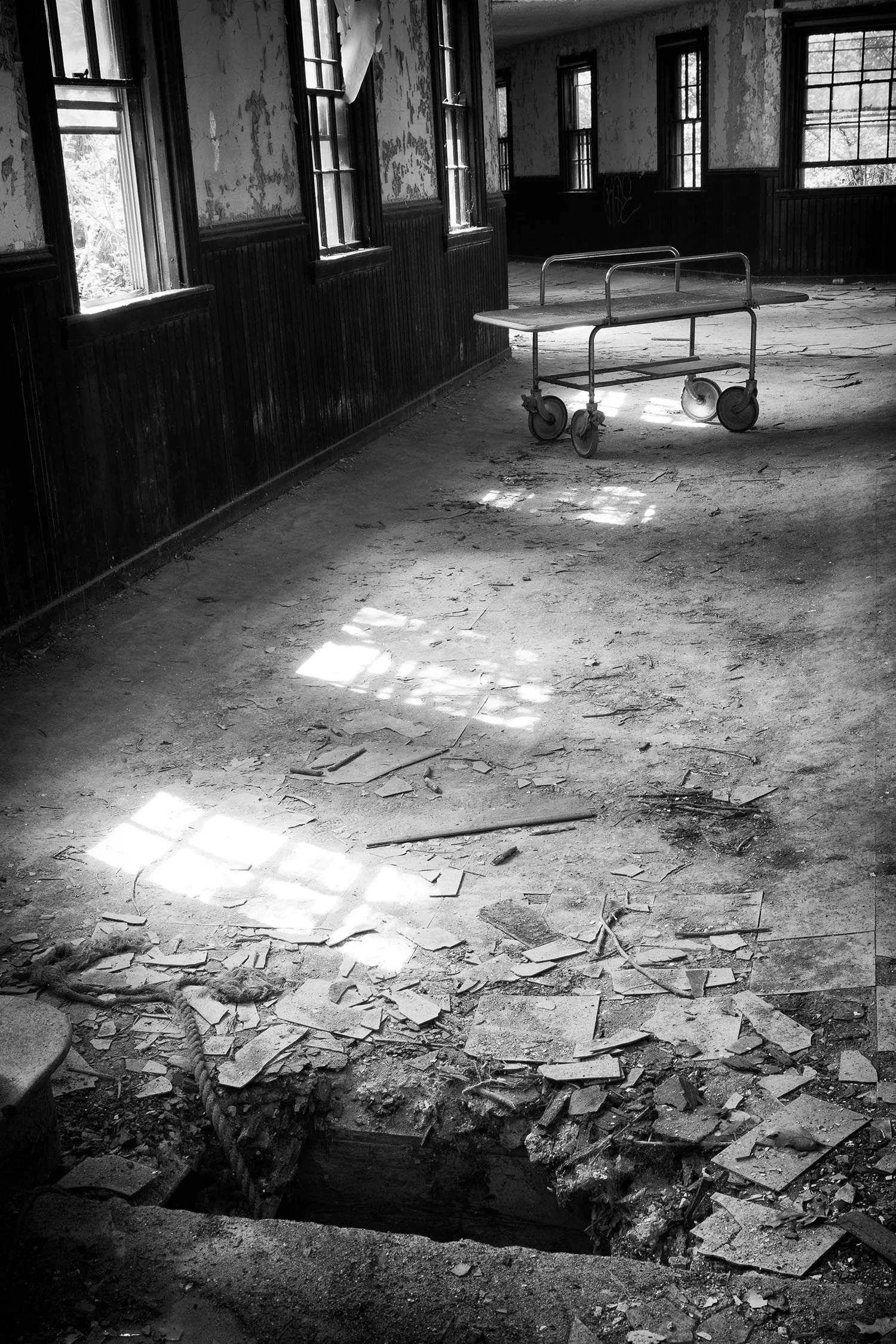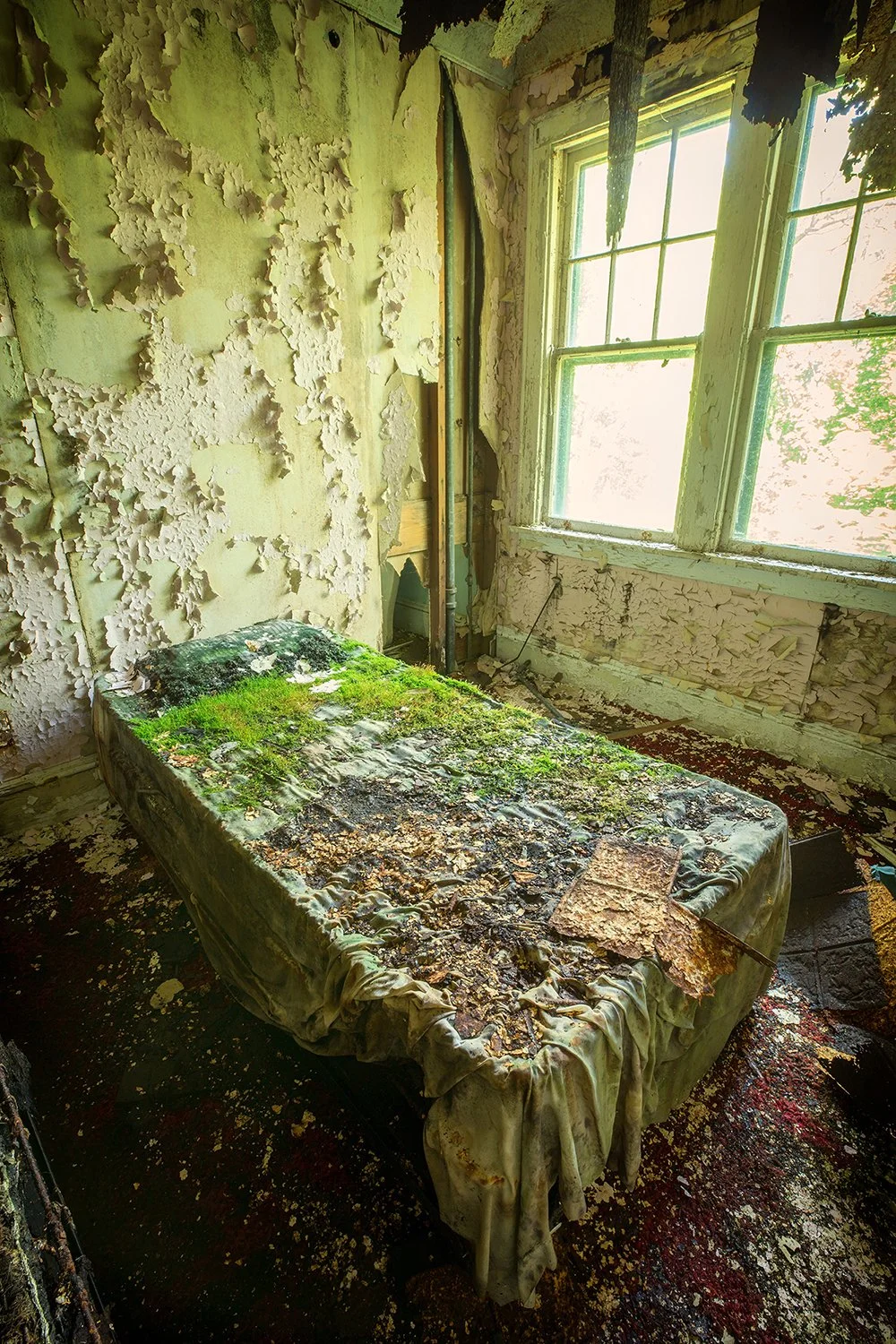 Time is of the essence as some locations have since been demolished or restored, while others remain frozen in time. Danger is often present, whether it be from rotten floors, hazardous materials, or unexpected inhabitants. I never go into these places alone and I am strongly invested in leaving no trace. Working with tripod and natural light, I do not stage my photographs — there is already a story to be told without making any adjustments.