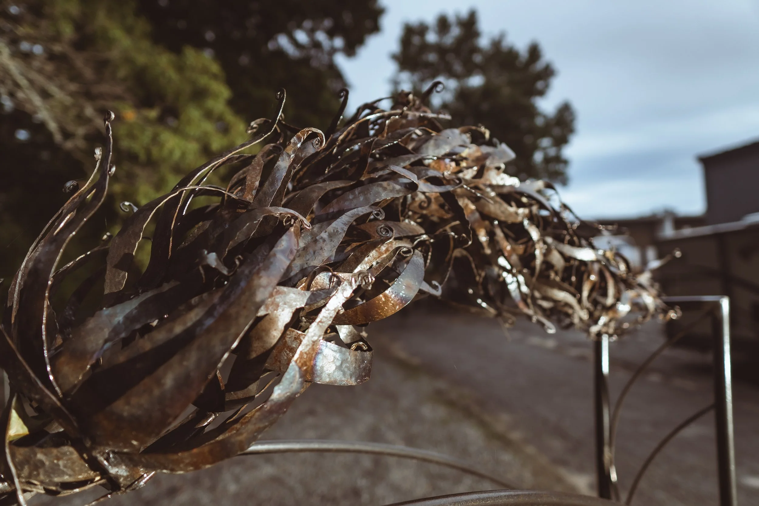 Sarah Alexander’s work is highly detailed, layered, and fluid. She works with multiple materials and mediums from paintings and ink drawings to Steelwork. Alexander creates through a stream of consciousness, and the resulting depictions appear gravity-defying. “With my steel sculptures I explored the feelings of living in an enchanted limbo as I grew too comfortable in my isolated routine, growing into my space as if I were turning into one of the wild overgrown plants in my garden. I explore the sensation of becoming immersed in my surroundings and being lost in thought.”